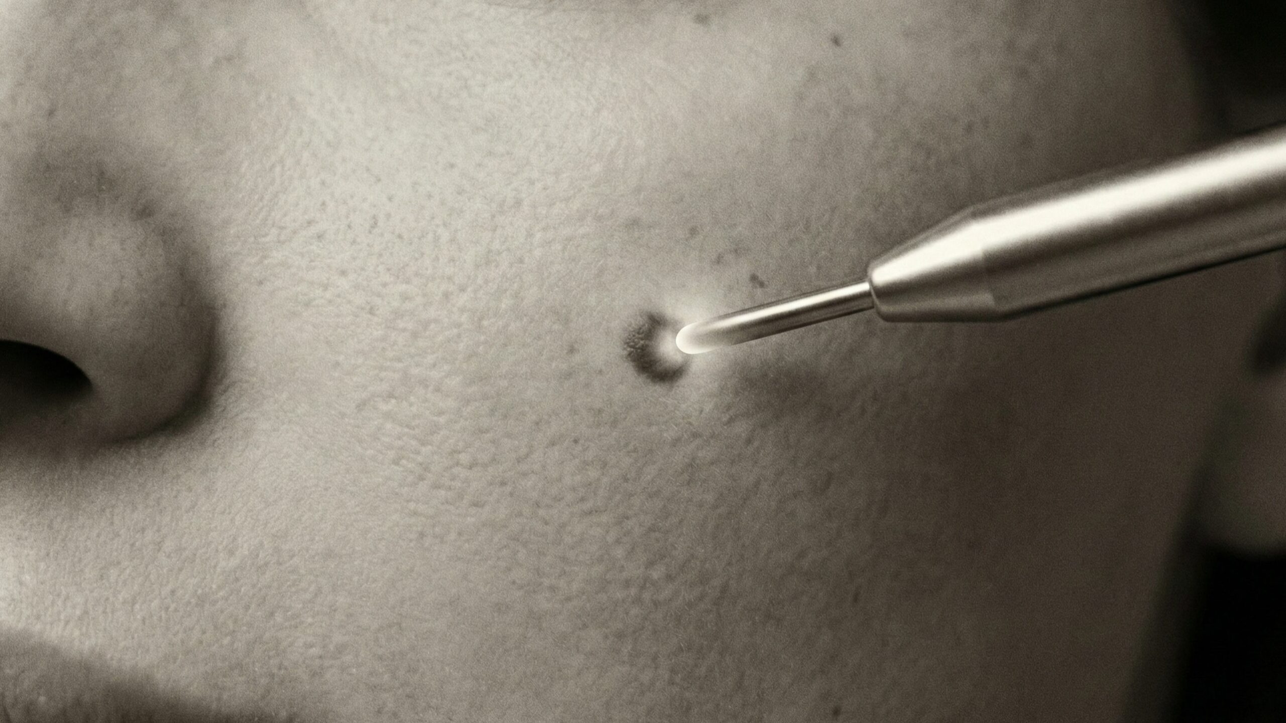 微細なペン型の先端で操作を行うため、狙ったほくろの組織だけをピンポイントで正確に焼灼できるのが特徴です。周囲の正常な皮膚への熱ダメージを最小限に抑えながら、平らなほくろから、比較的大きなほくろや盛り上がったほくろまで幅広く対応できます。施術時間は1つのほくろにつき数分程度と短時間で完了します。
