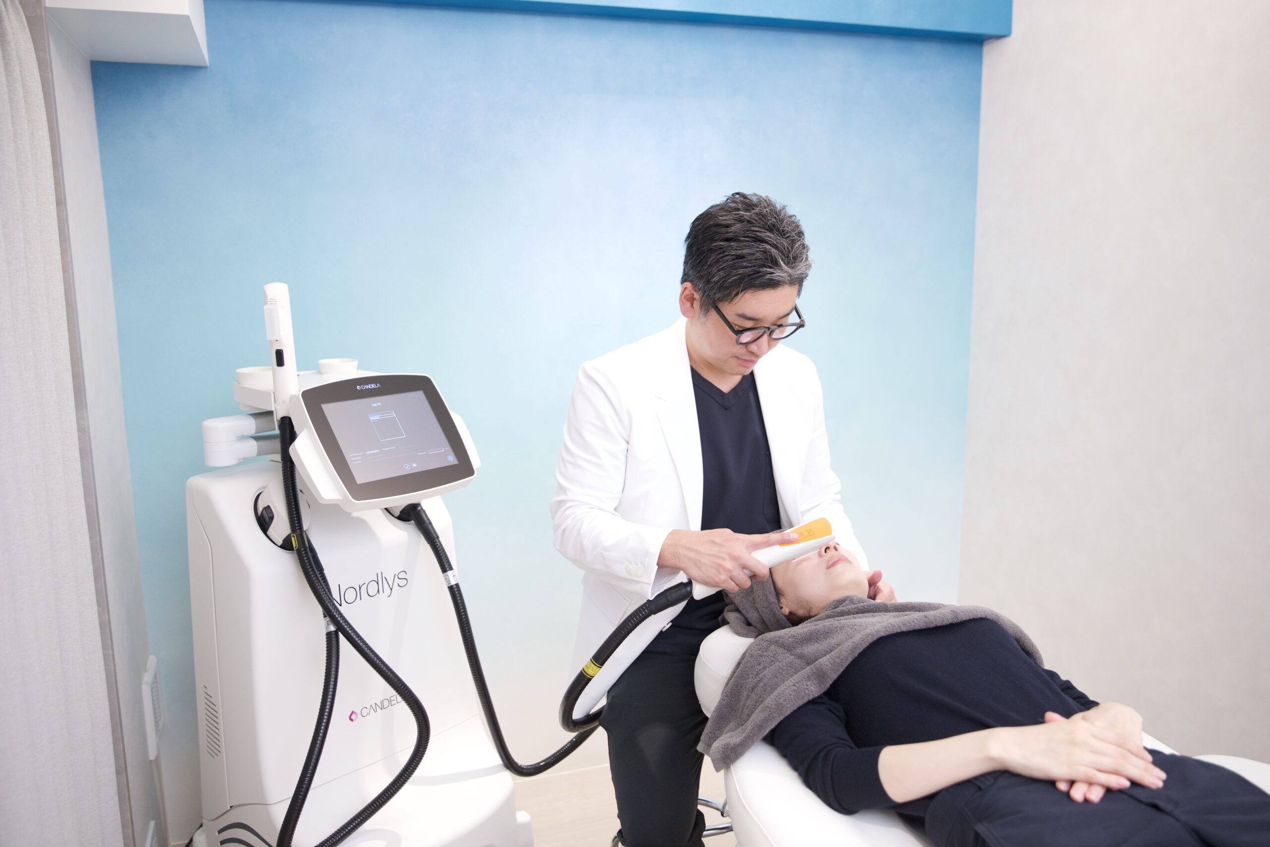 当院では、ノルウェーのキャンデラ社が開発したNordlysという医療用IPL機器を使用しています。従来のIPL機器と異なり、不必要な波長をカットする「ウォーターフィルター」や、短いパルス幅でも十分なエネルギーを与える技術を搭載しており、痛みや熱感を抑えながら効果的に光を届けられます。施術では複数のフィルターを使い分けることで、シミや色素沈着には短い波長、赤みや血管には長い波長といったように、悩みに応じた光を照射します。