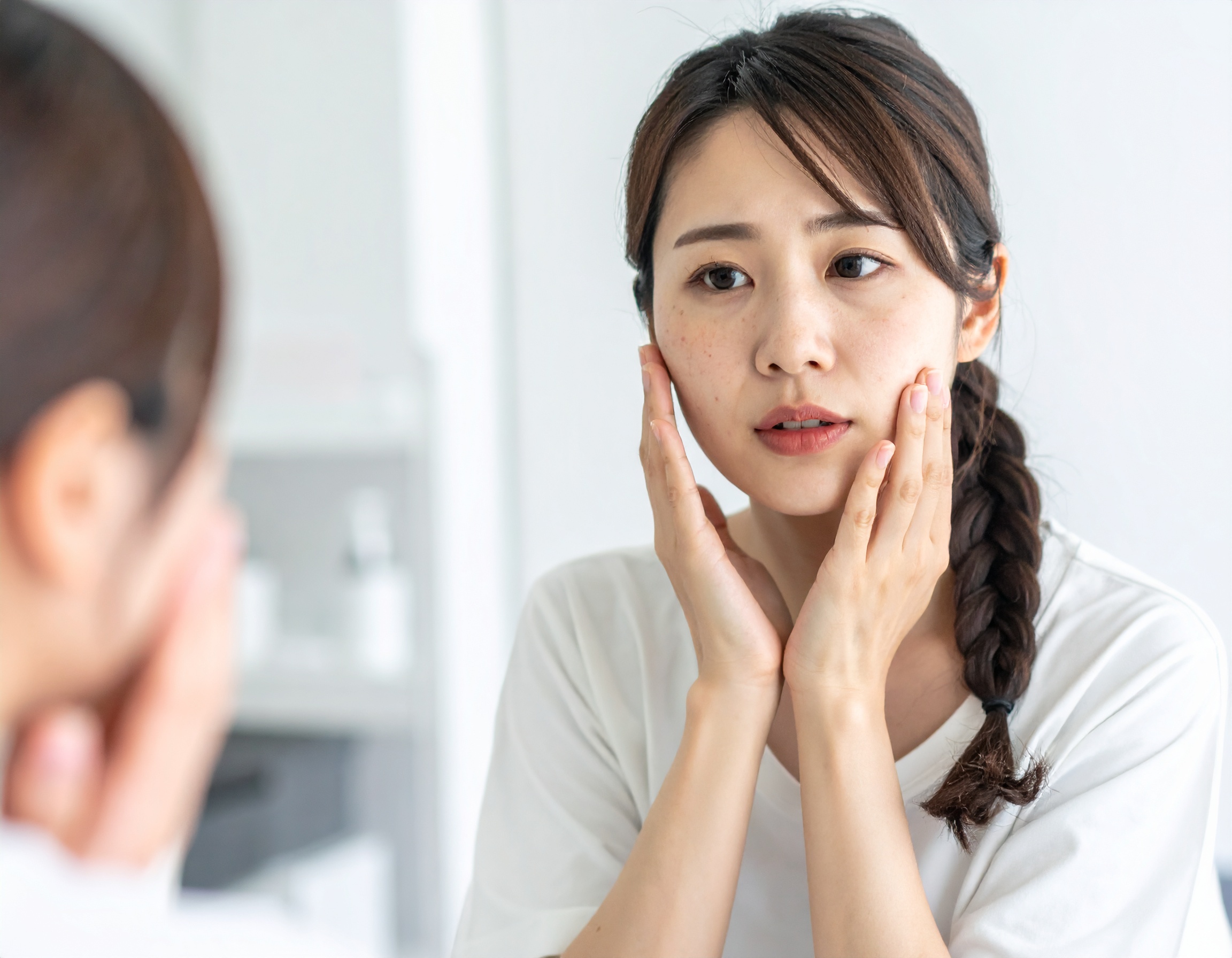 - そばかすや、顔全体に広がる薄いシミが気になる