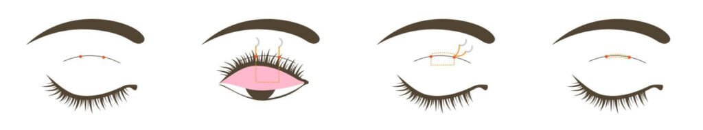 まぶたに厚みがある方は、脂肪除去や眼瞼下垂治療との併用でより自然な仕上がりが期待できます。カウンセリング時に詳しくご説明いたします。感染症のリスクはごくまれですが、施術後に強い痛みや熱感、膿が出るなどの症状があれば、すぐに当院までご相談ください。